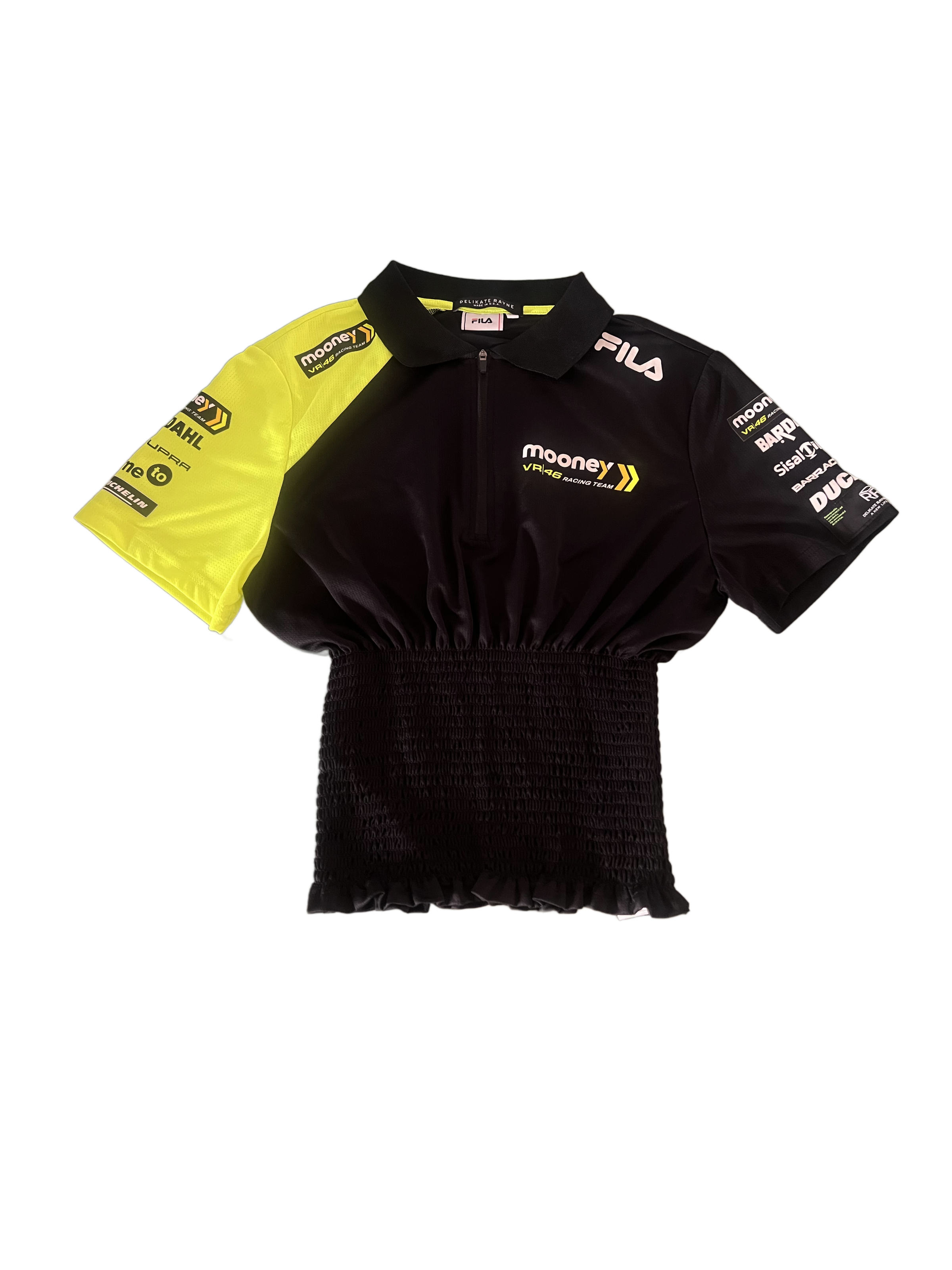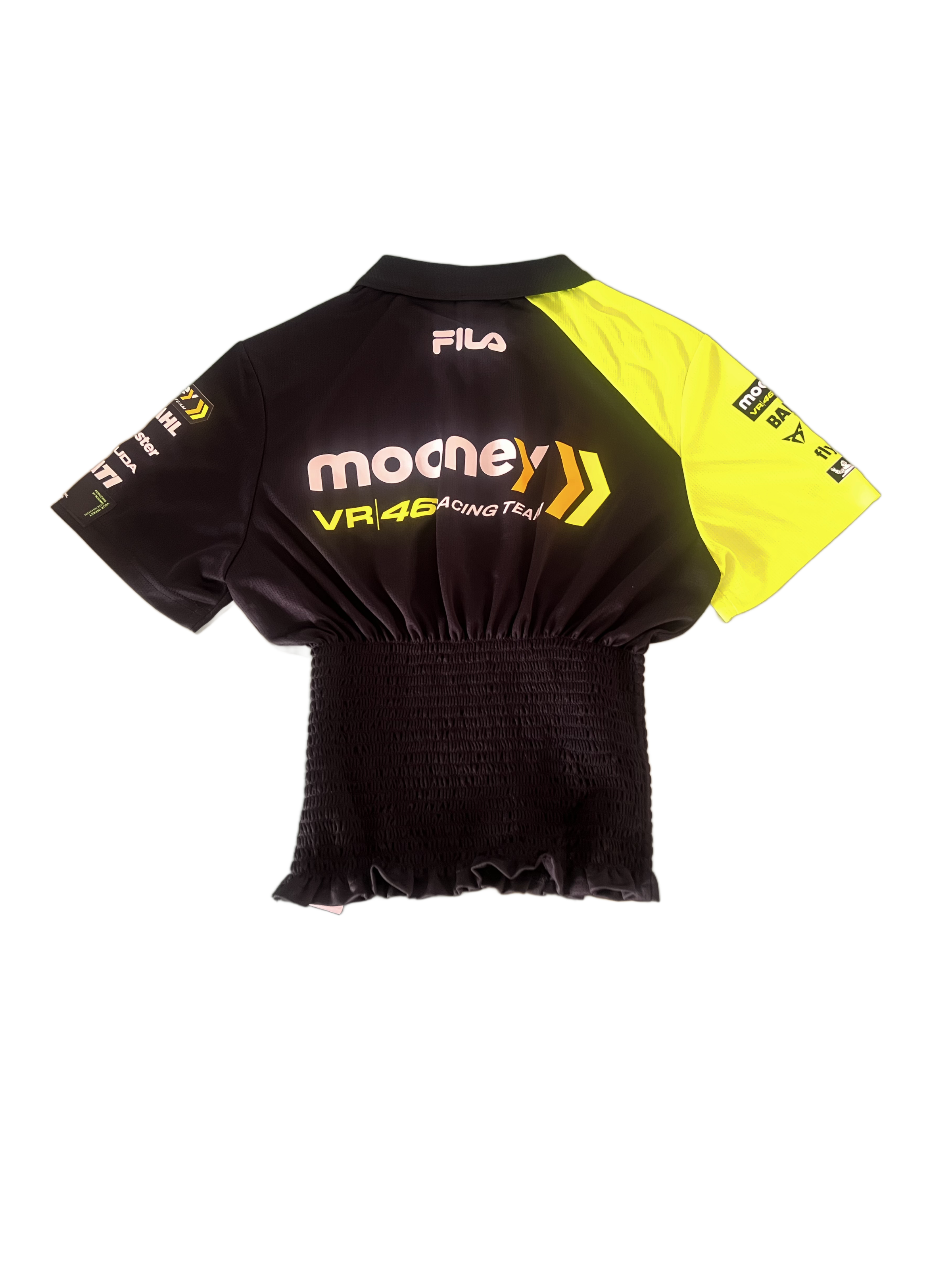 Elevate your collection with this hand-cropped, reimagined Mooney racing jersey. Rescued from vintage discards destined for the landfill, each piece has been transformed into a one-of-one collector’s item. The signature DRR patch on the sleeve and shirred waist detailing create a flattering, tucked-in silhouette, while the cropped length ensures a standout look. Fits XS/S best.
