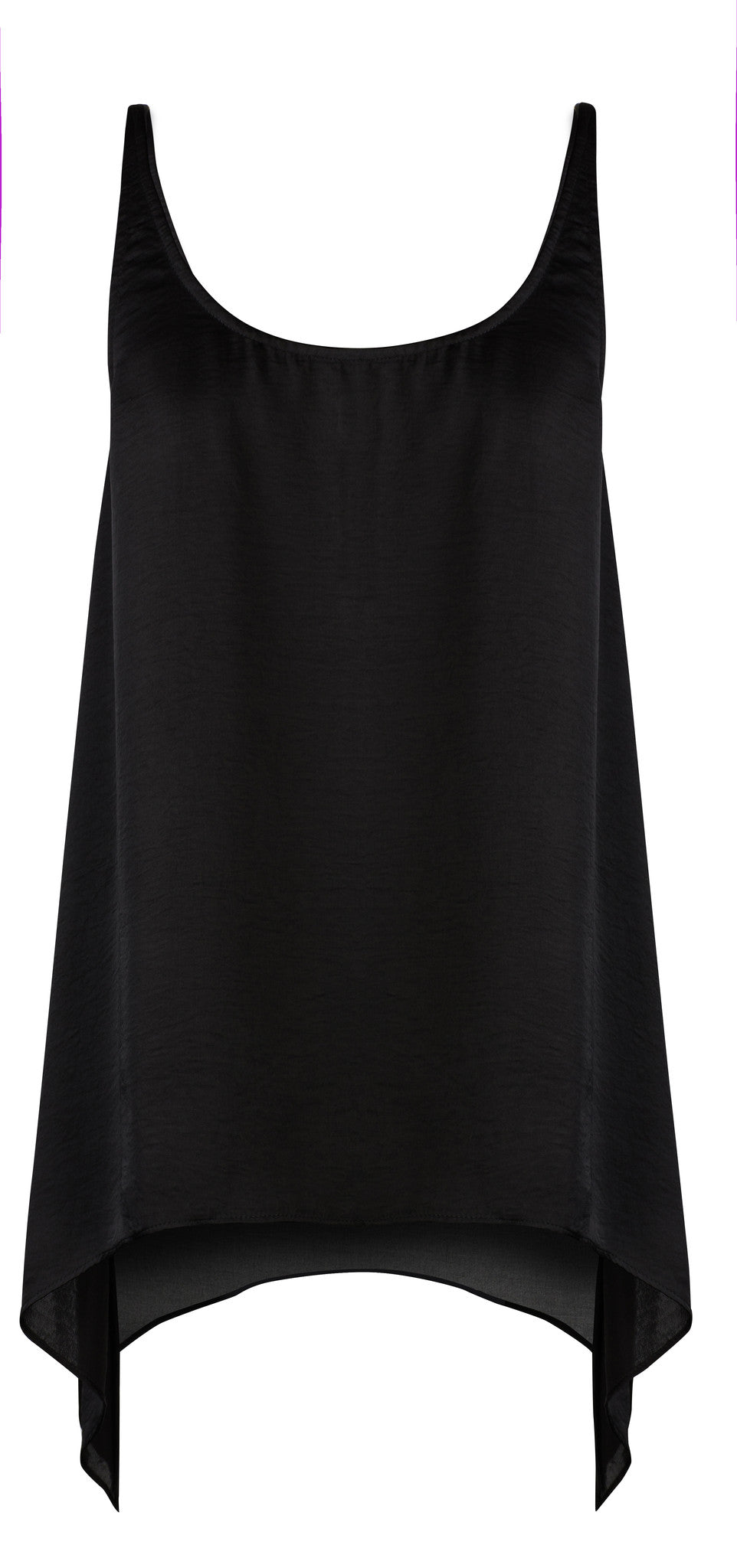BLACK SATIN SCOOP BACK TANK