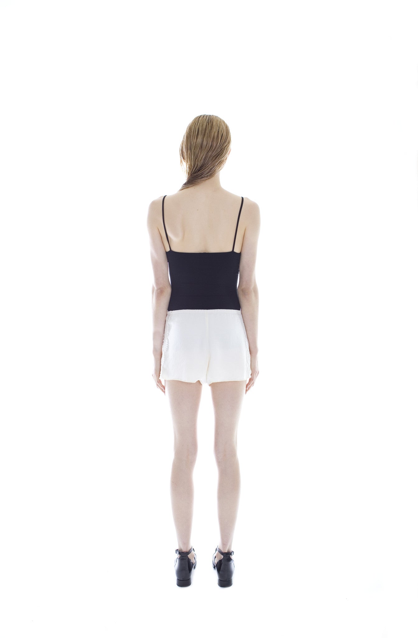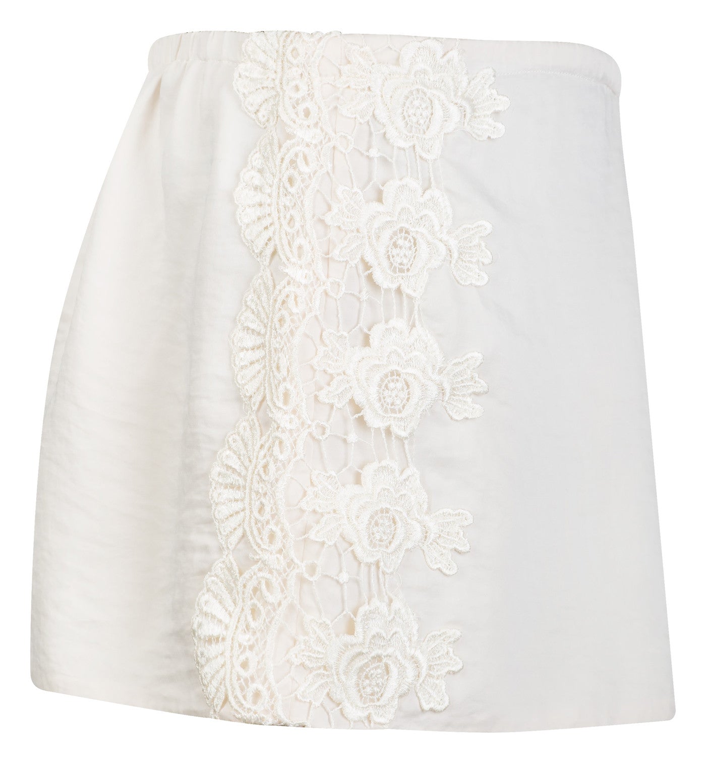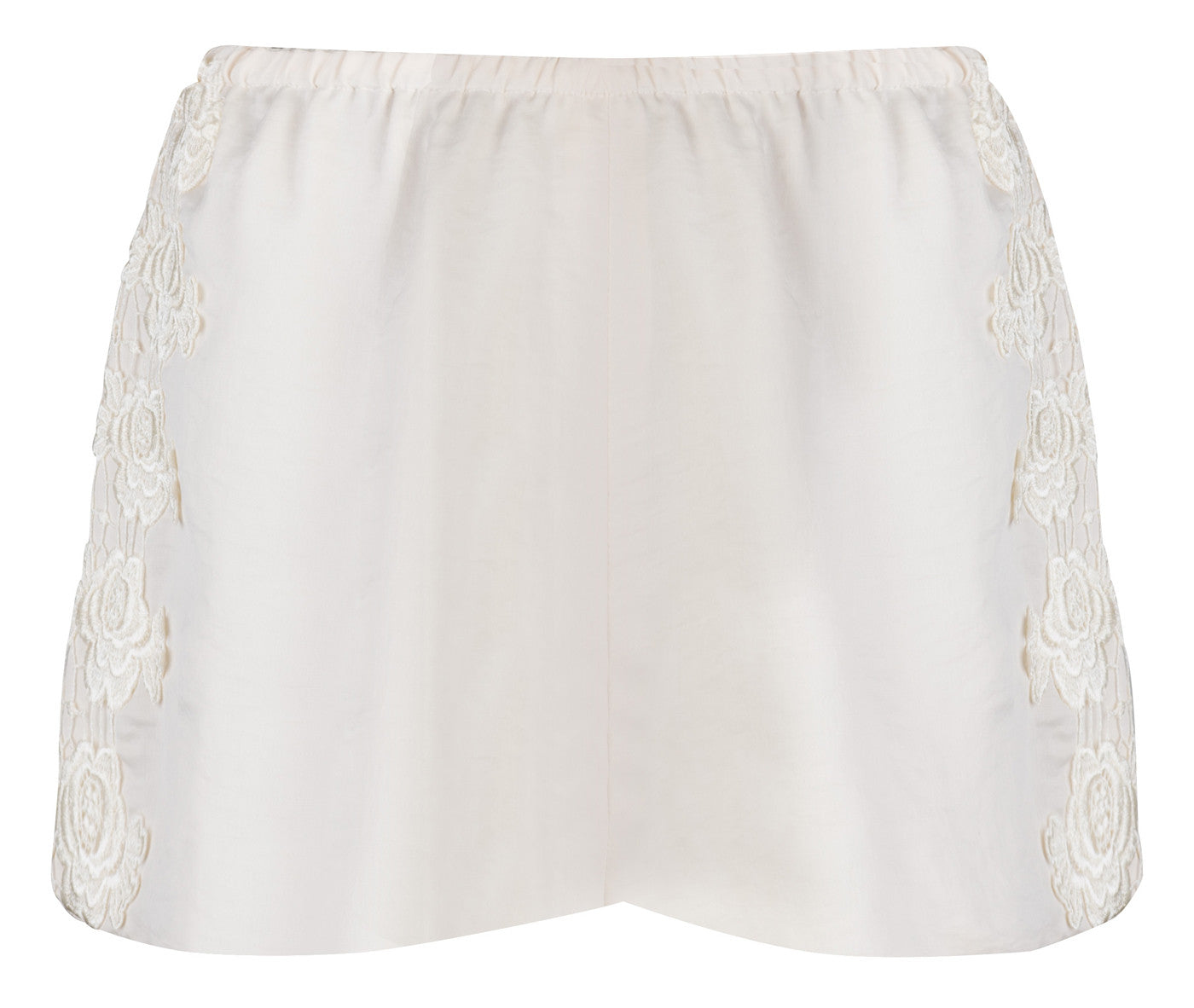WHITE SATIN AND VENICE LACE TRIM SHORTS