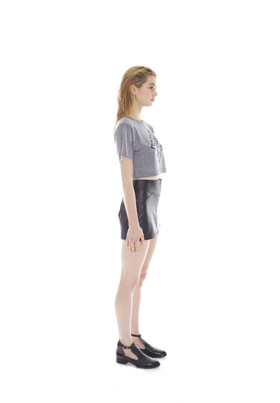 Super soft, crop t-shirt. With a crew neck and short sleeves. Featuring an ambigram graphic that reads "respect, money, success" Item is one size and has a loose, cropped fit.