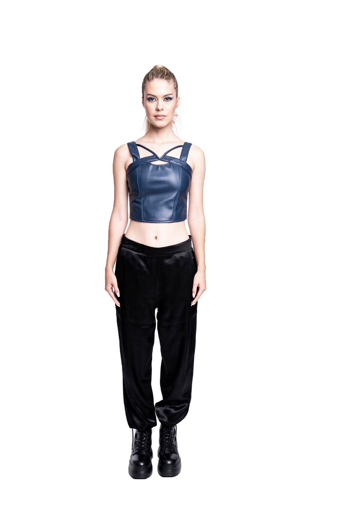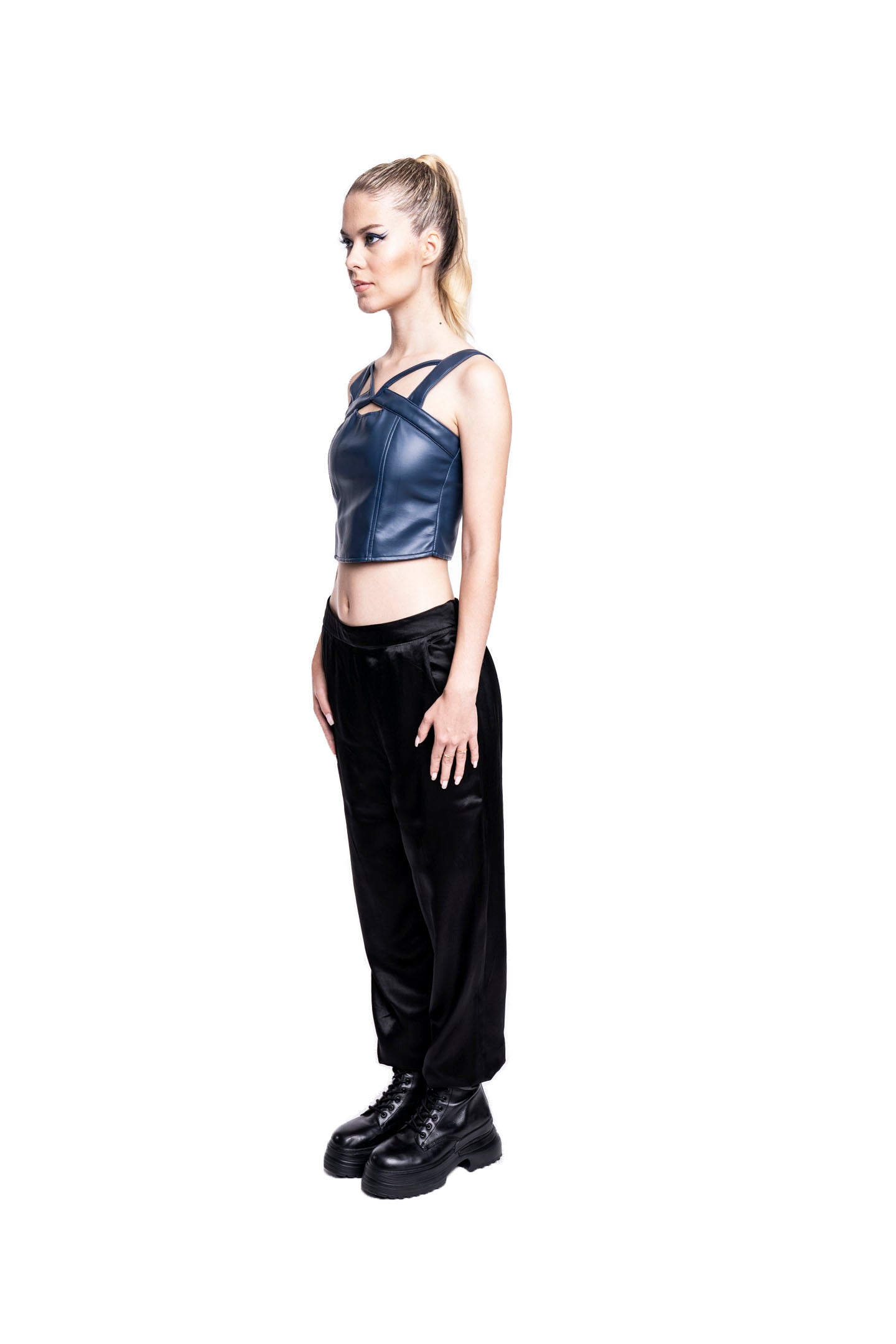 NAVY BLUE VEGAN LEATHER BUSTIER