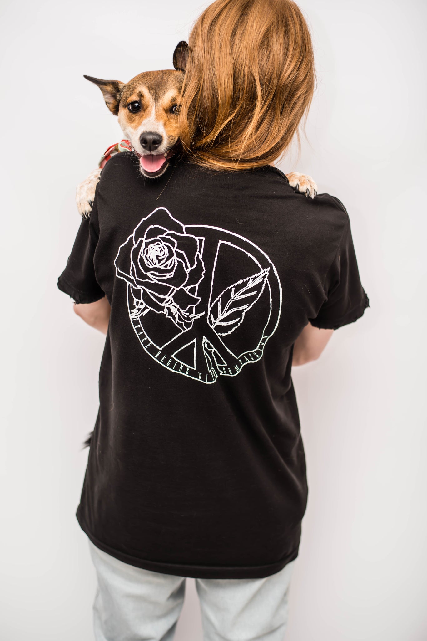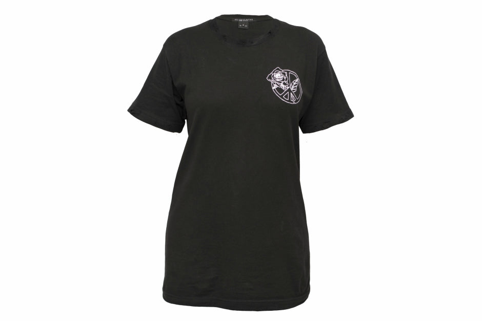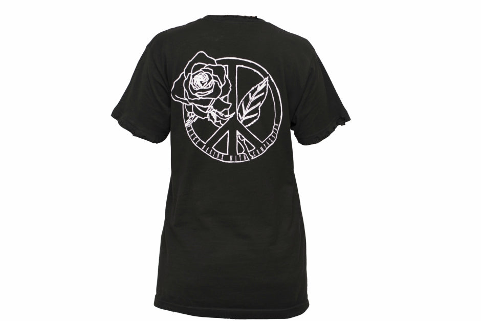 DESIGN DETAILS: The peace sign signifies the universally recognized symbol for harmony. The rose serves as a representation of love as roses are globally symbolic of true adoration. Hence-where there is neutrality & love, you will find empathy. Message is simple & inclusive for all- no matter what the scenario is peace will always begin w/compassion