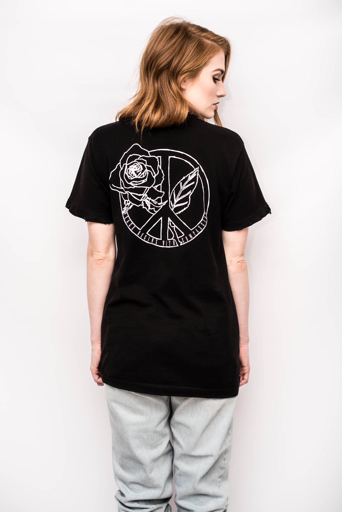 PEACE BEGINS WITH COMPASSION DISTRESSED TEE