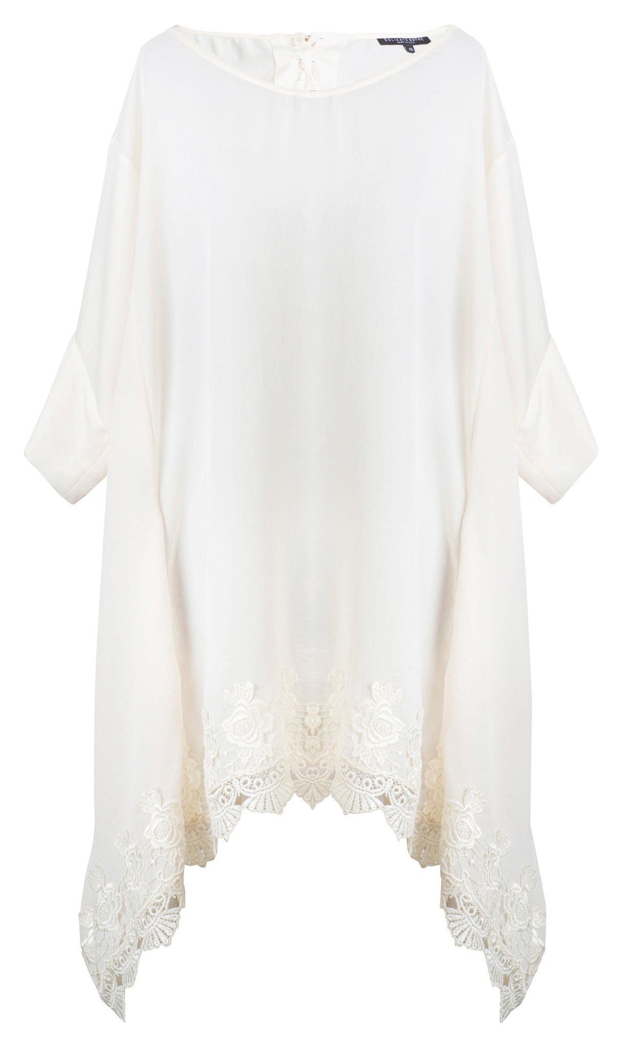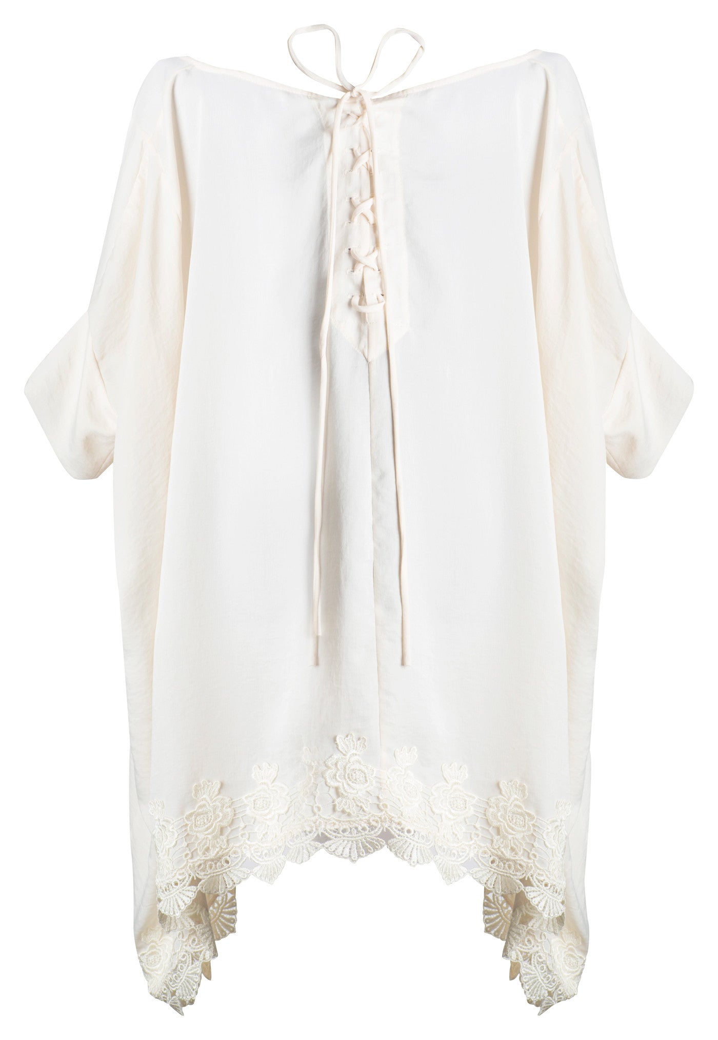 WHITE SATIN AND VENICE LACE TRIM TIE BACK TUNIC