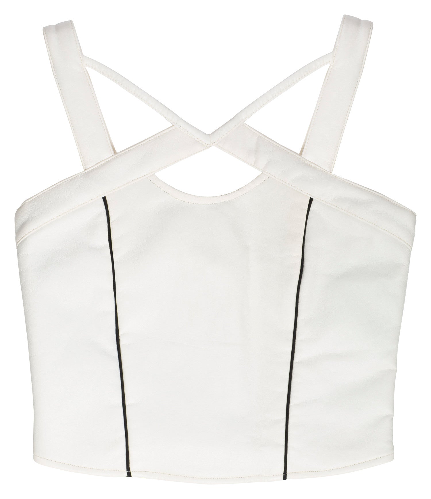 WHITE VEGAN LEATHER BUSTIER WITH PIPING
